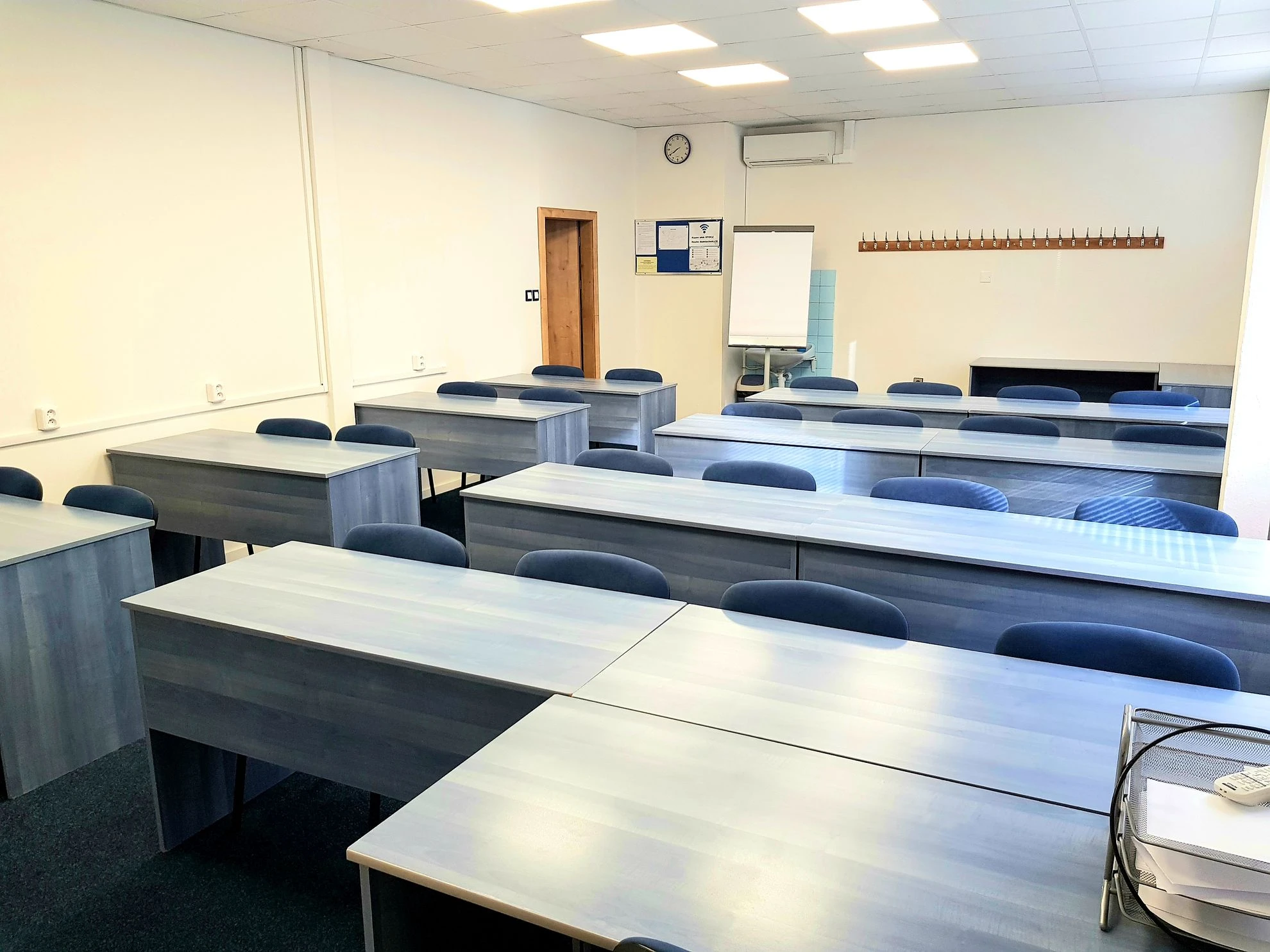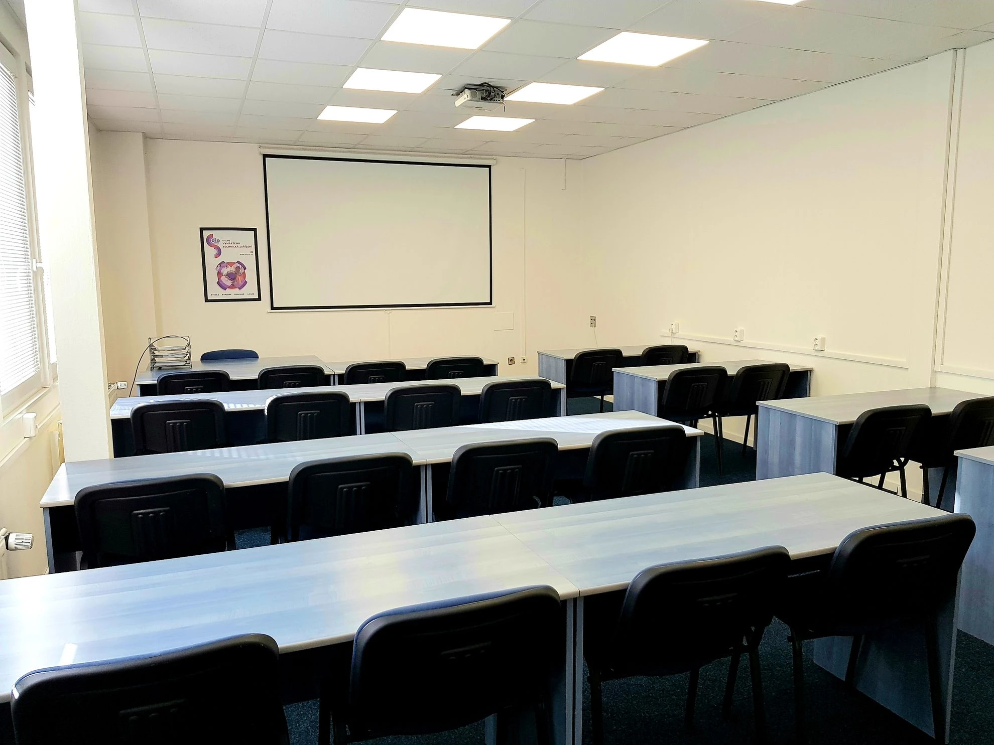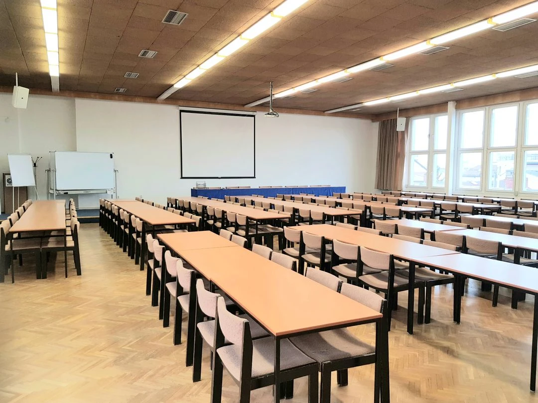 Pronajímáme sály a učebny plně vybavené dataprojektory, promítacím plátnem, WIFI připojením, s možností ONLINE přenosů, elektrickými přípojkami pro NTB, klimatizací, ozvučením a mikrofony kde je potřeba, zatemněním v sálech, flipchartovými tabulemi s bloky i fixy, po dohodě i popisovatelnými magnetickými bílými tabulemi.